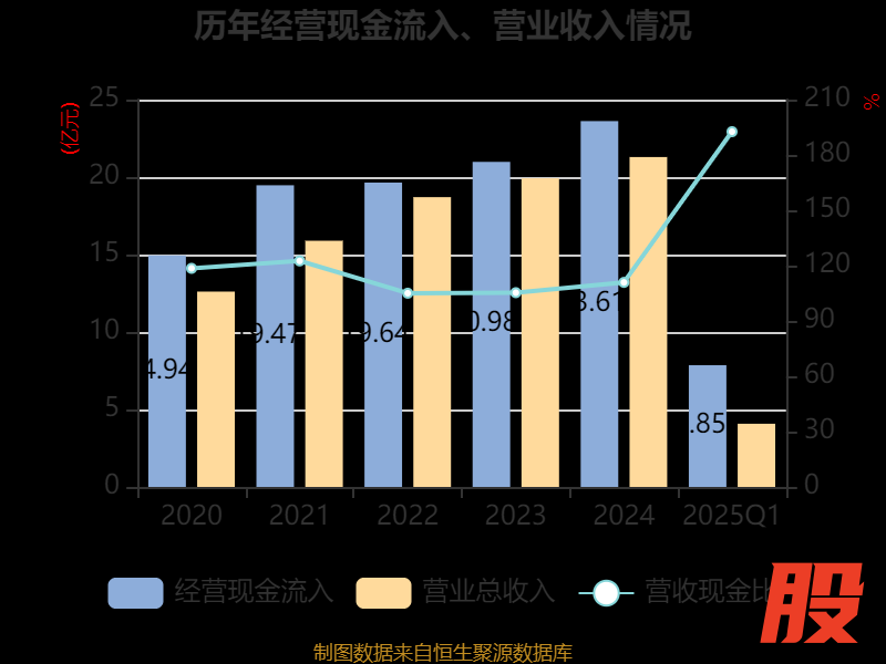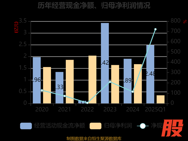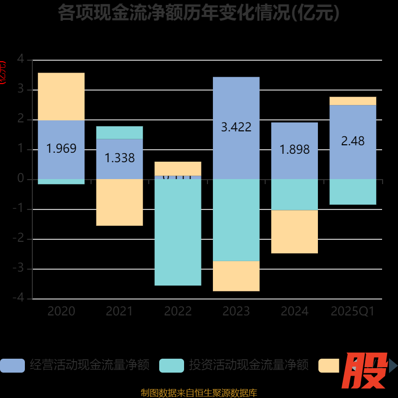 截至2025年一季度末,公司经营活动现金流净额为2.48亿元,同比增加2.86亿元;筹资活动现金流净额2763.95万元,同比增加4501.27万元;投资活动现金流净额-8567.45万元,上年同期为304.22万元。